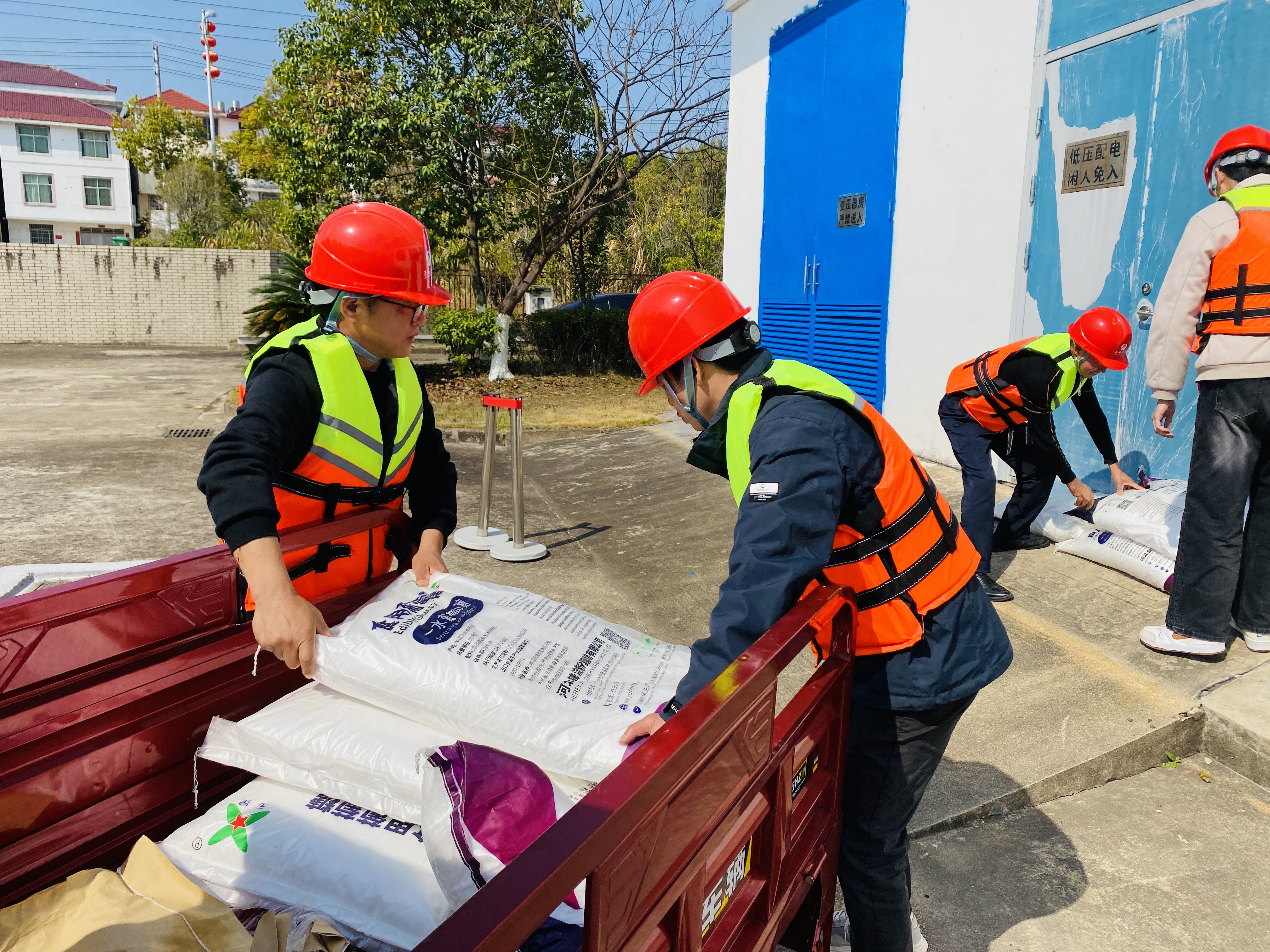 演练现场,一群抢险队伍正在化验室、配电间、提升泵房、危废间等区域来回奔忙,有的通知供电公司停电,请求供电公司安排电工切断配电房总电源开关、关闭ups电源;有的在配电间和厂区大门口拉警戒线;有的扛着沙袋,跑步冲往“抢险点”,进行洪水封堵;有的从容不迫地将化验室精密仪器、危化品等设备转移至安全区域存放……整个现场呈现出一片严肃、忙碌、有序的场景。