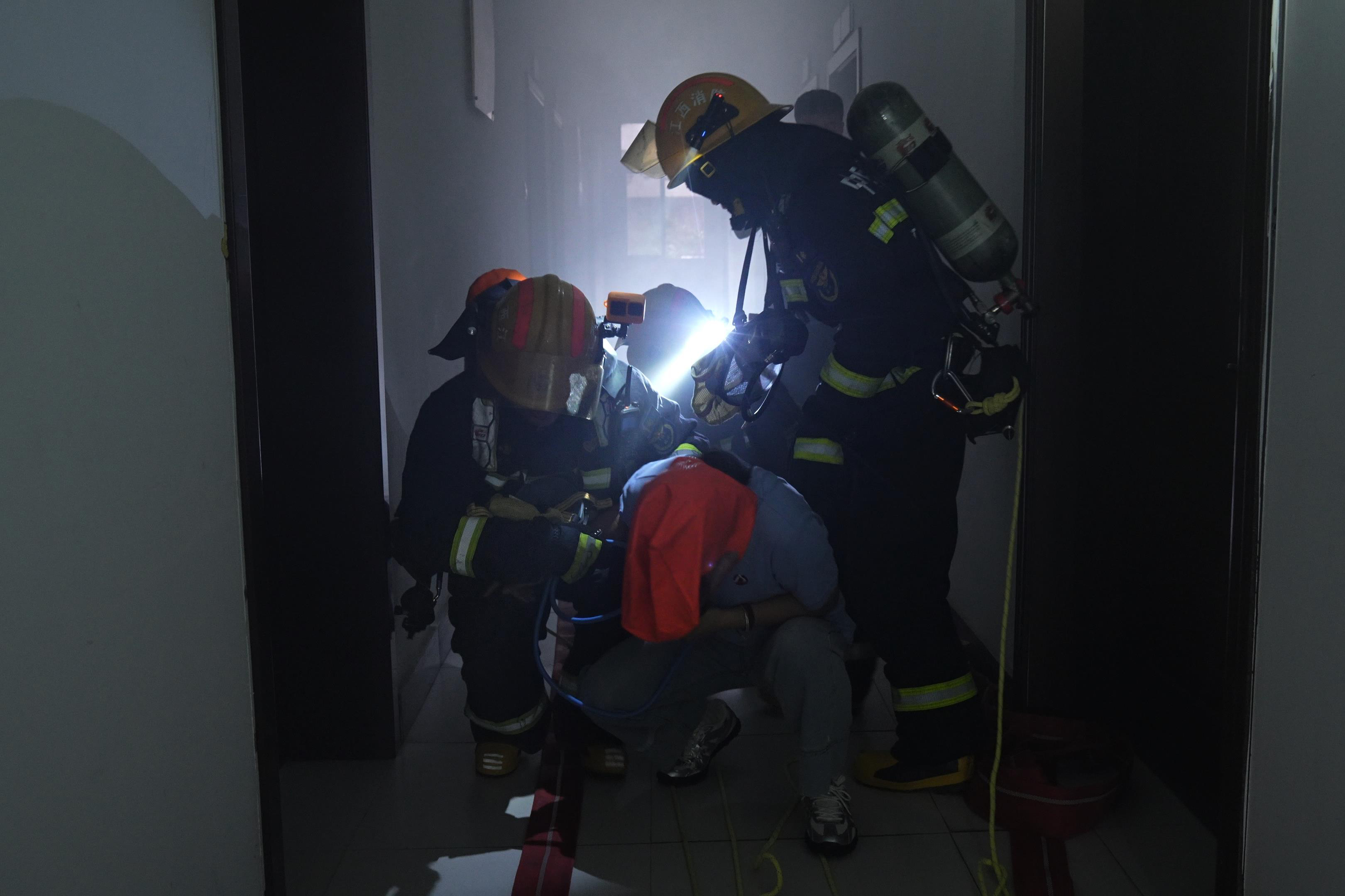县消防大队消防员迅速响应,第一时间赶赴现场。初步了解情况后马上投入灭火救援。在救援过程中,消防大队人员充分利用现有装备和技术手段,对火势进行了有效控制。对于可能存在的有毒有害物质泄漏风险,消防大队人员也采取了相应的防护措施,进行了妥善处理,并模拟了火灾现场被困人员的救援行动。