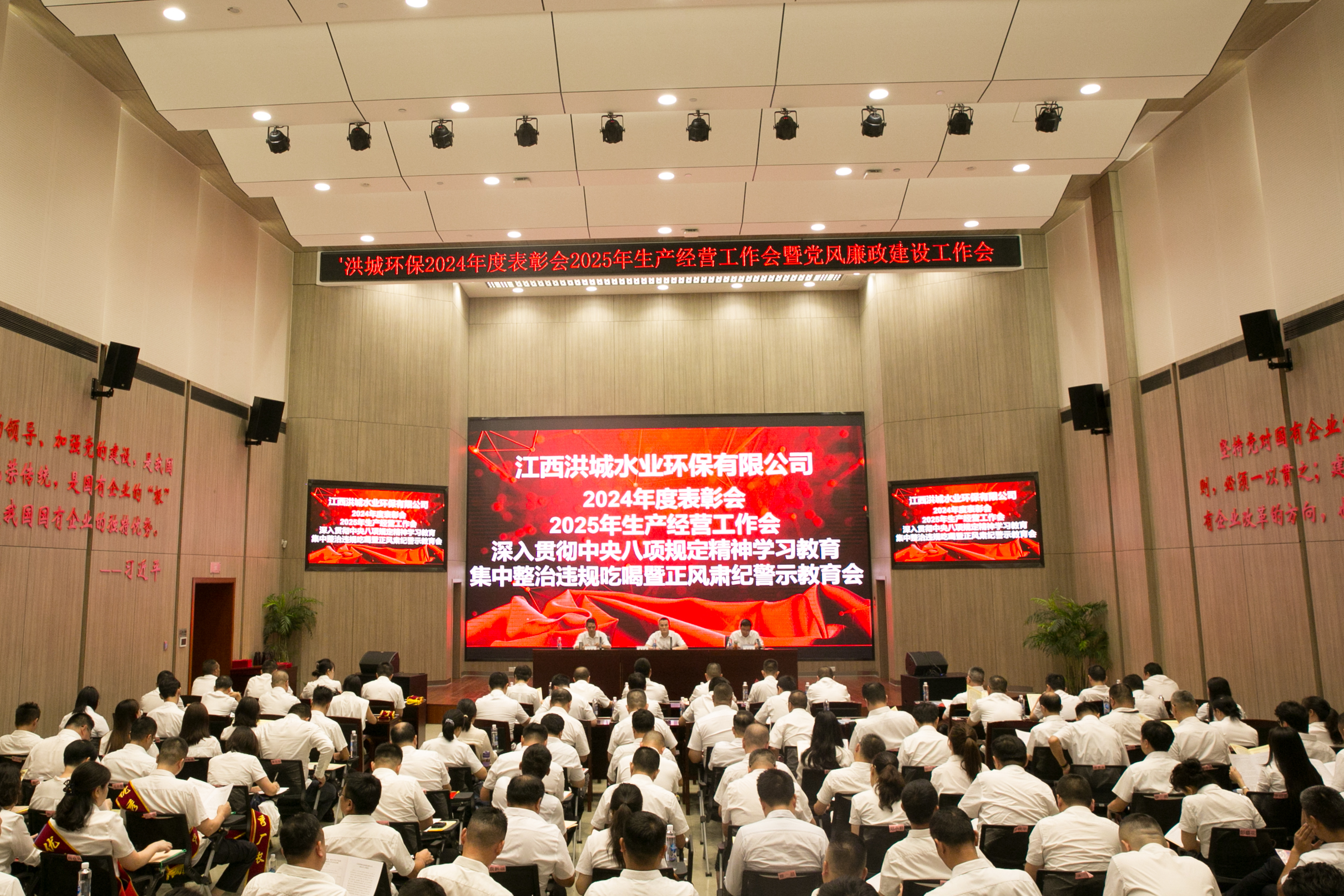 6月21日,江西洪城水业环保有限公司召开2024年度表彰会、2025年生产经营工作会暨党风廉政建设工作会。南昌水业、洪城环境党委书记、董事长邵涛,洪城环境党委副书记、总经理蔡翘,洪城环保党总支书记、董事长曹名帅,洪城环保党总支副书记、总经理涂剑成,洪城环保总经理助理付方俊出席会议。会议由涂剑成主持。洪城环保各部门负责人、优秀员工代表参加会议。