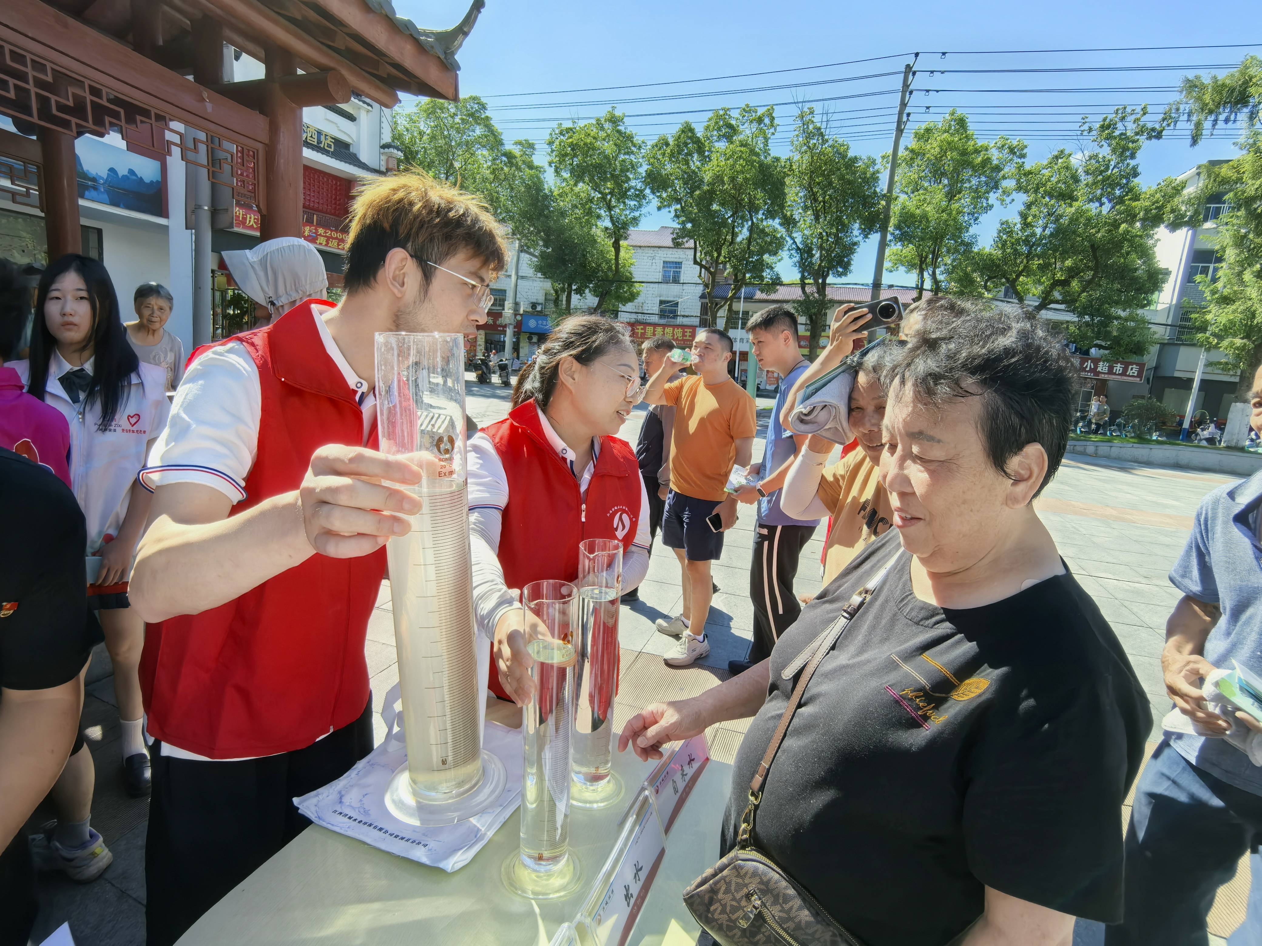 活动现场,各单位通过悬挂横幅、设立展板等多种形式,向群众开展生态文明教育。资溪县分公司向群众发放宣传手册,并摆放进出水水样、自来水水样及污泥脱水泥样,向群众逐一讲解污水处理工艺及污水处理的意义。通过水样展示区进出水水样直观的视觉对比,群众切实感受到了污水处理前后的差异,同时也对污水处理工作给予了充分肯定与高度称赞。