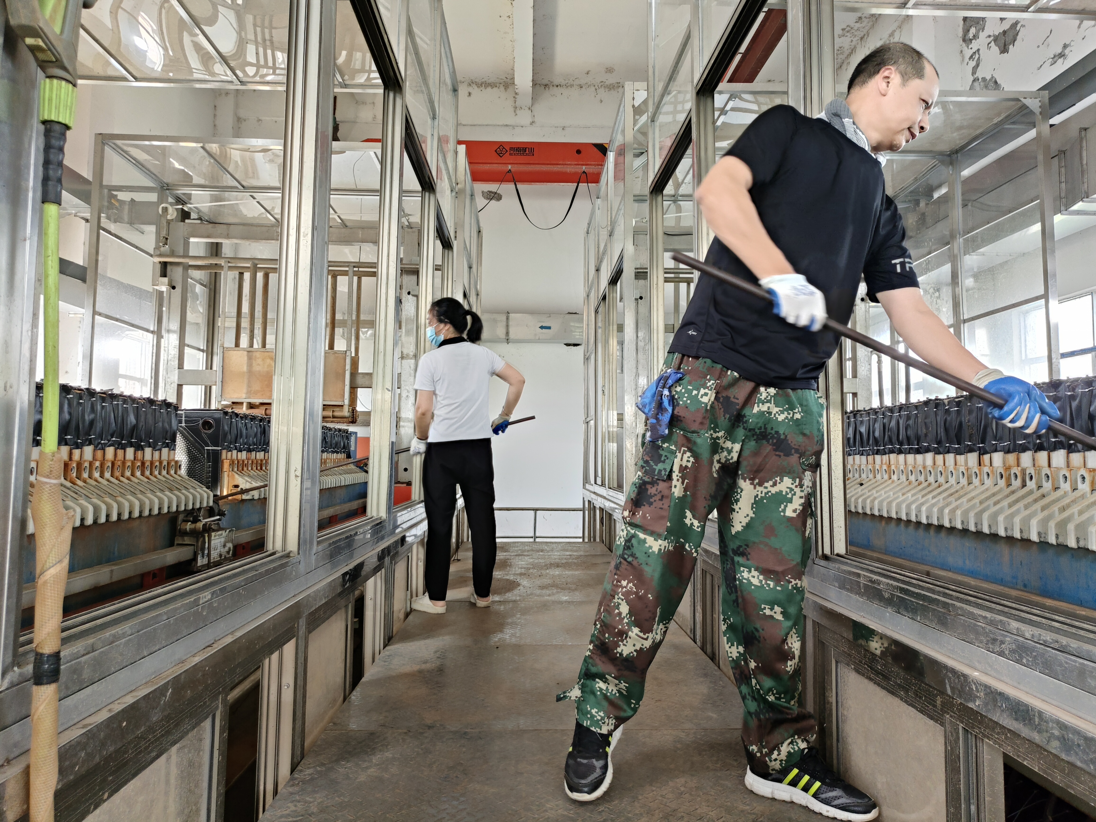 污泥脱水是污水处理厂中至关重要的一环,卸泥的时候是最辛苦的,每天最少需要卸五板泥,每卸一板泥需要耗费至少半个小时,卸的时候浑身湿透,豆大的汗水一滴滴流下,蜇的眼睛生疼,但他们毫无怨言,动作迅速又麻利。