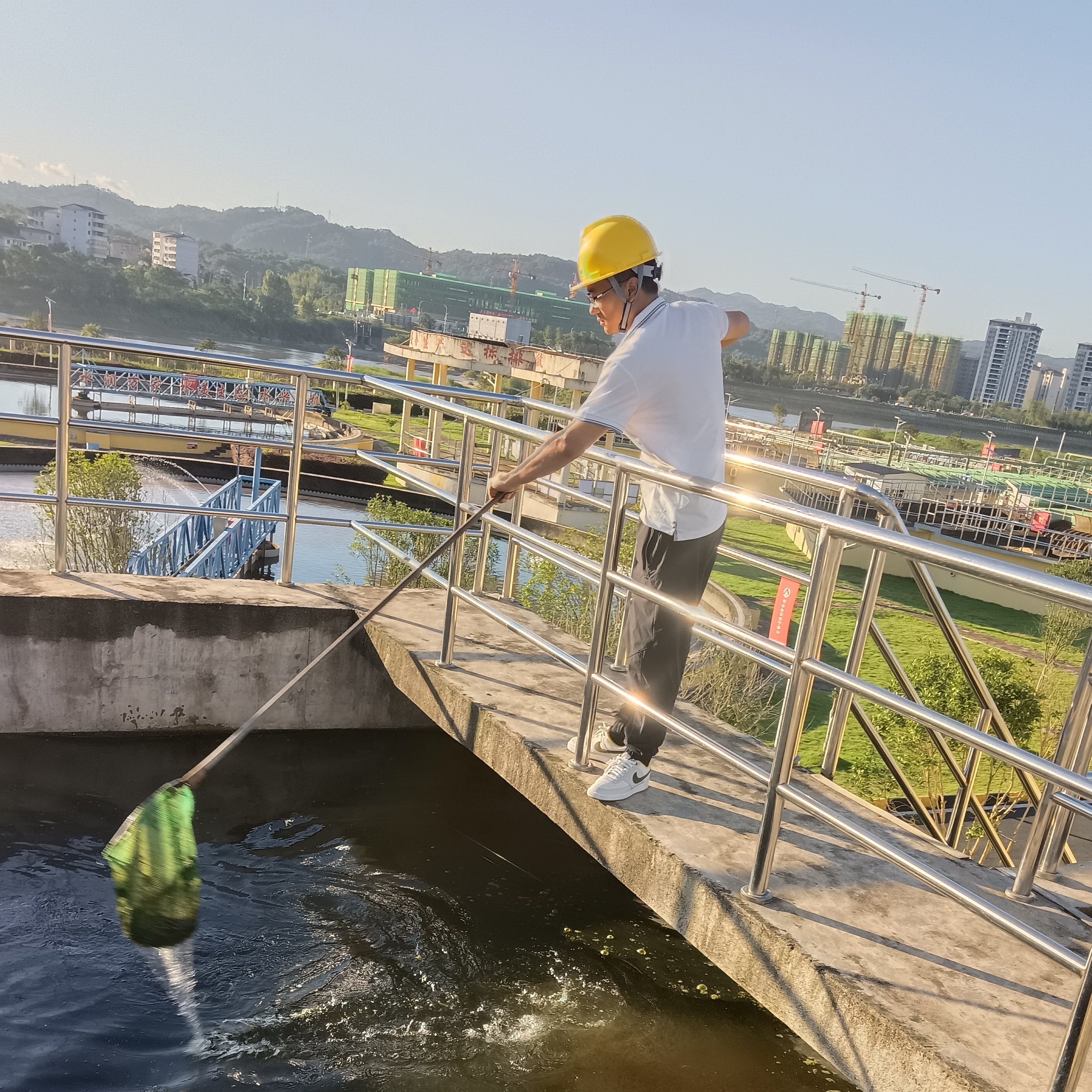 还有这样一群人,不分白天黑夜,不管冬寒夏暑,全年无休都坚守在环保工作岗位上,二十四小时运转,每时每刻都要精神高度集中关注污水处理厂各工艺段运行状况,只为守护一汪清泓。每小时的现场巡检与中控室的记录数据来回折返跑是他们的标配,若数据有问题又要直接去现场检查,看有无垃圾卡住设备等异常现象。气温在逐渐升高,高效沉淀池、深床滤池等浮萍繁殖较快,且恰逢浮萍集中爆发期,为及时消除浮萍对沉淀池等水体造成的管道堵塞等不良影响,每天早上他们主动出击,全力打捞浮萍,清理和管道疏通排泥工作,恢复干净清理浮萍,只愿“萍”水不相逢,做到发现一处立即清理一处,防止浮萍疯长覆盖水面。骄阳似火、酷暑难耐,但无论气温多高,都阻挡不了运行班组消灭浮萍的决心!