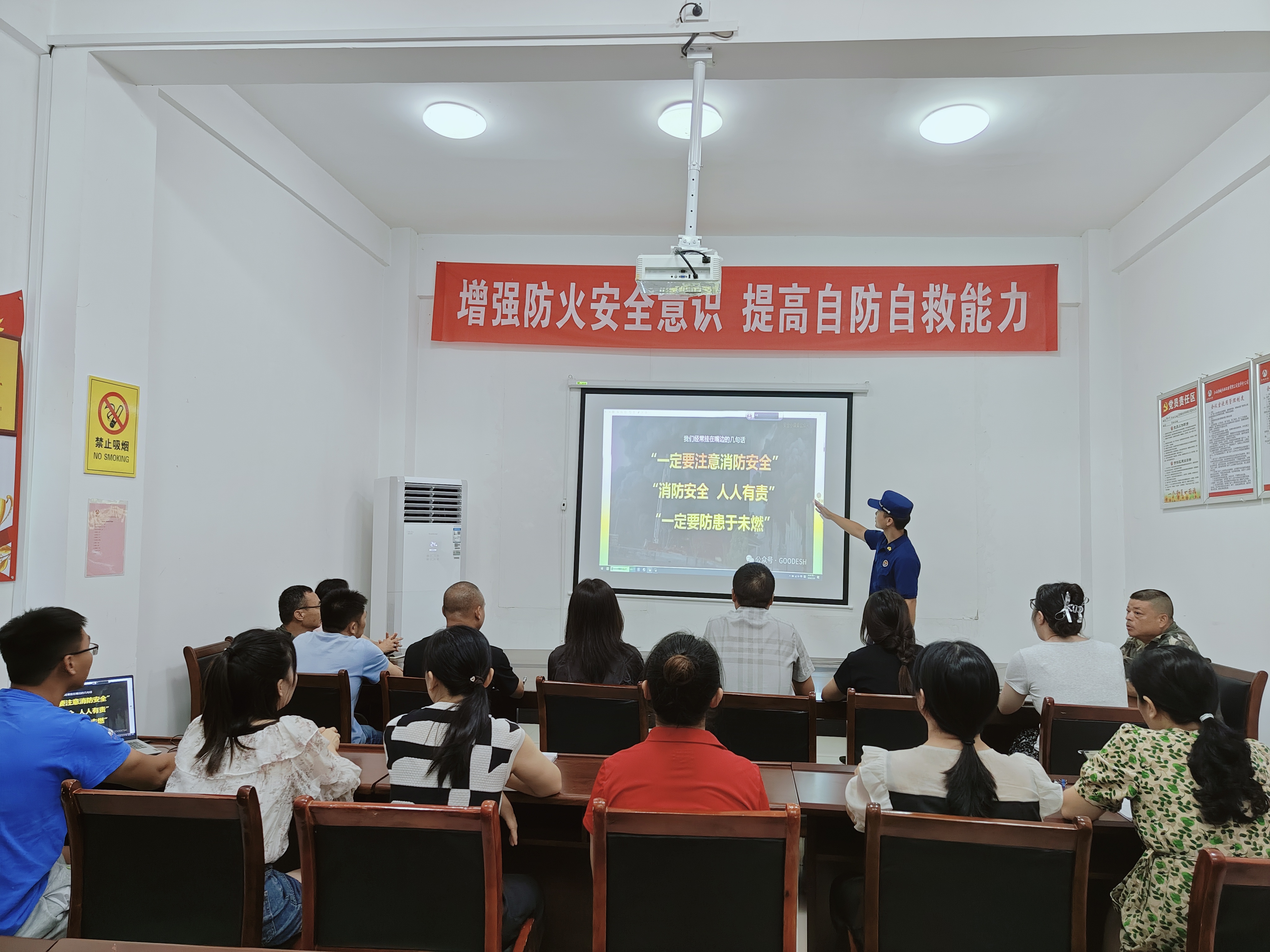 大队宣讲人员详细讲述了 “四个能力”和“四懂四会”具体内容、排查火灾隐患的相关细节及灭火逃生知识匮乏的危害性和分析讲解了近期发生的几起重大火灾的典型案例等内容。同时,就如何开展火灾隐患自查、预防和扑救初期火灾、疏散逃生演练、溺水自救等相关知识作了重点讲解。培训过程中,职工们主动好学,积极参与,相互交流与互动,同时,员工遇到不懂的问题及平时操作时存在的一些疑问,都会主动向宣讲员寻求自己的答案。最后,大队宣讲人员还对应急处置流程及常见消防器材使用等进行了现场演示教学。